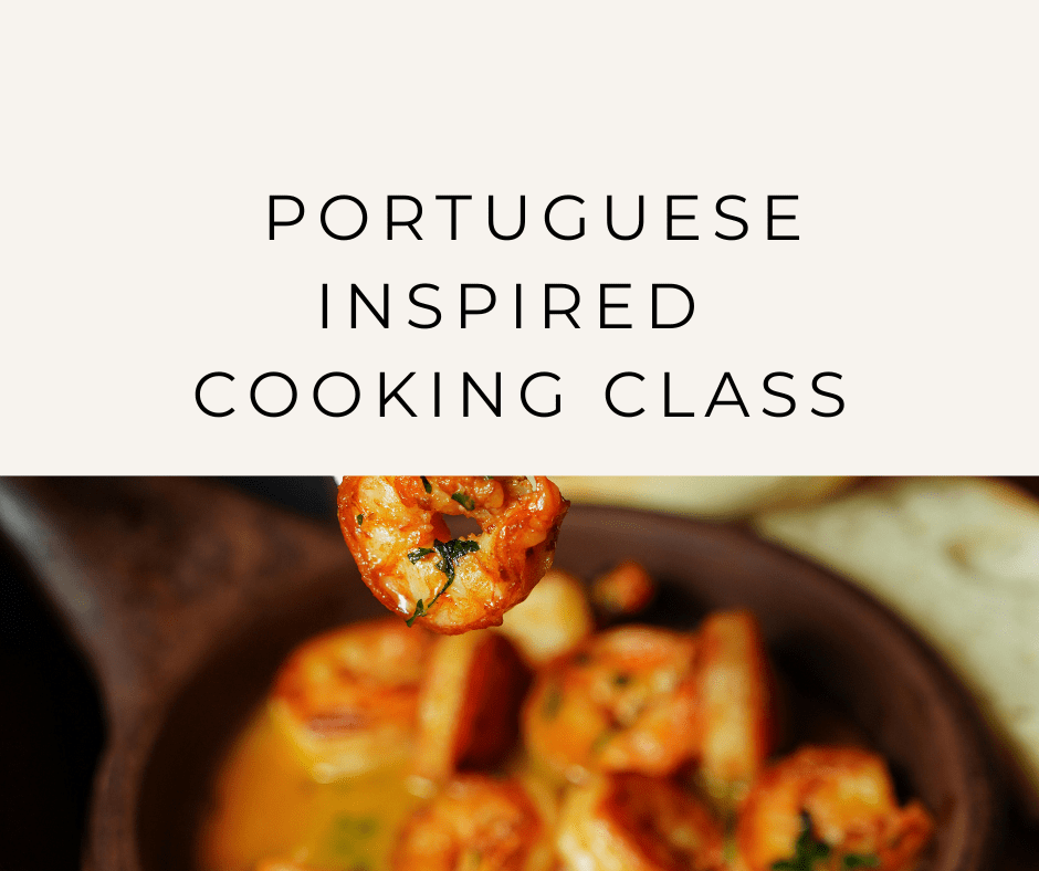 The Portuguese food cooking class is a celebration of a cuisine that we know and love. You’ll learn just how simple it is to make Chourico Bread, Calamari with caper & lemon sauce, Prawns Nacional and Cilantro Potatoes.